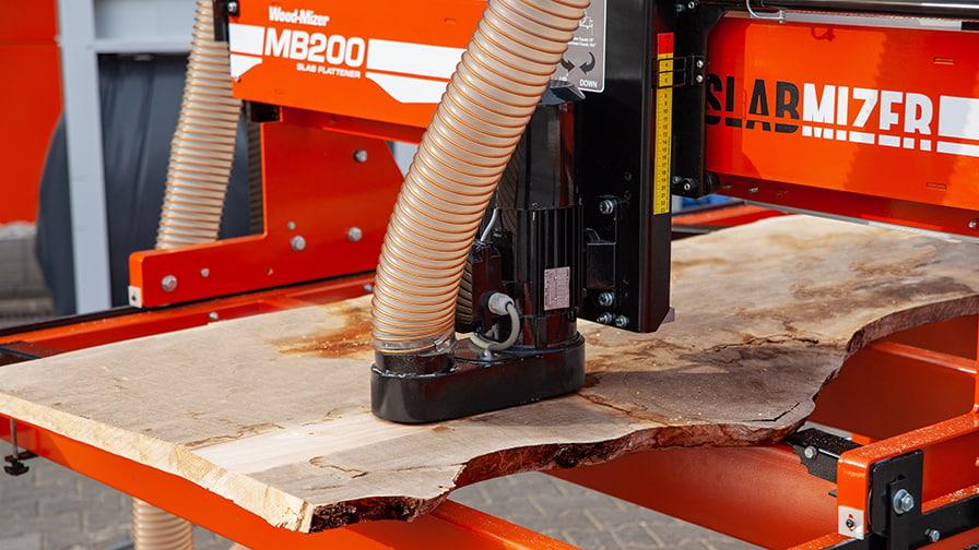 SlabMizer MB200 efektivně srovnává povrchy a vyrovnává dřevěné desky, prkna a další široký materiál s minimálním úsilím. SlabMizer zpracovává materiál materiál s parametry 1420 mm šířky x 203 mm tloušťky x 558 mm délky. Stroj má motoricky poháněnou řeznou hlavu směrově ovládanou s proměnnou rychlostí posuvu, 5" frézovací/srovnávací řeznou hlavu s pěti čtyřstrannými noži a připojení pro smirkovou hlavu.
